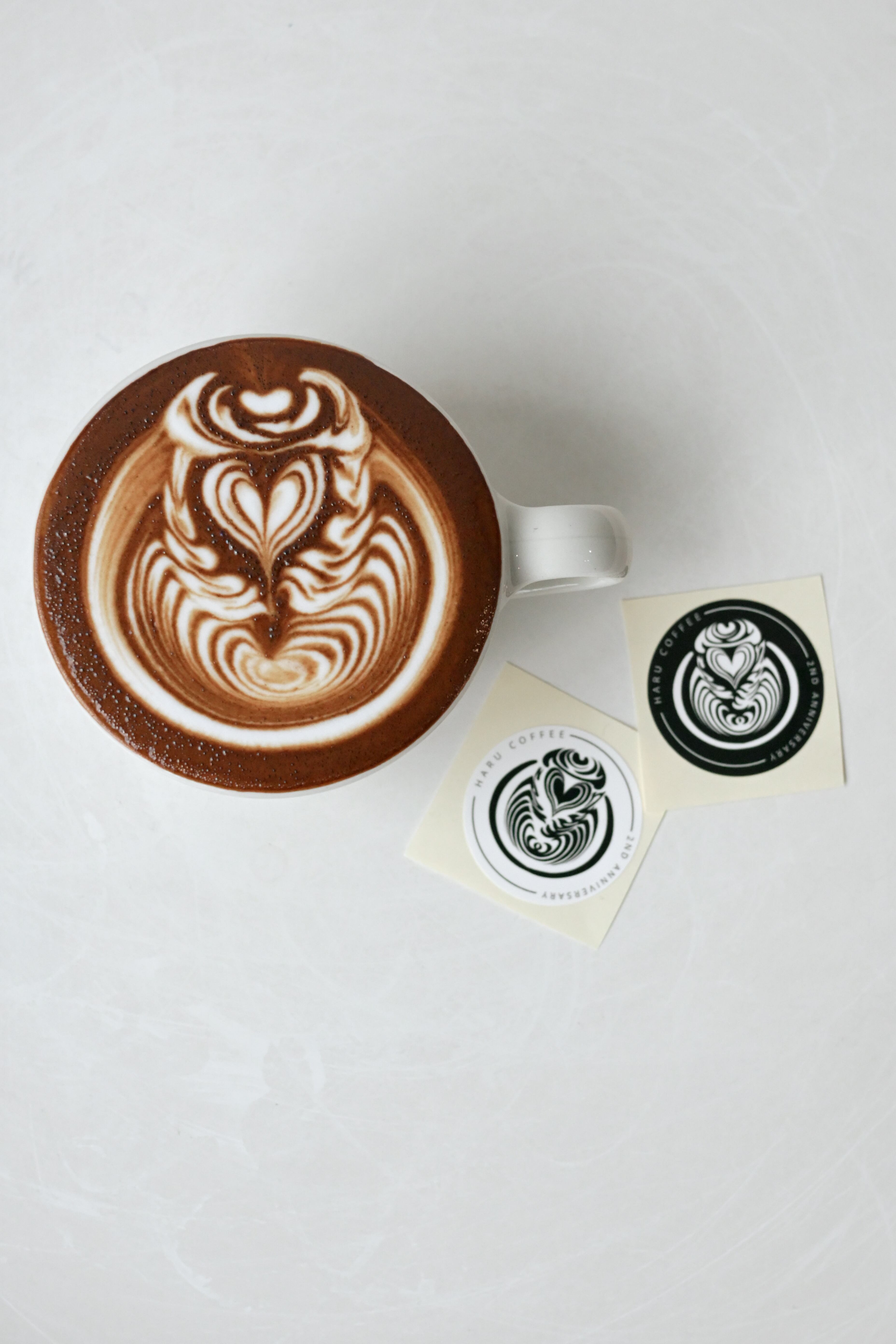 こちらの白と黒の2周年記念ステッカーは、シンプルながらもスタイリッシュなデザインが特徴です。